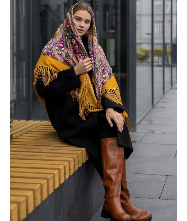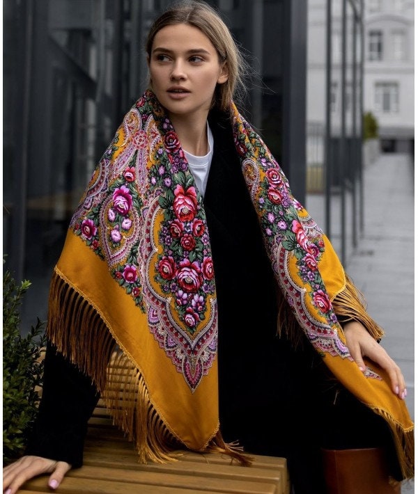 USA Ukrainian Shawl Ukrainian Hustina 80% Wool Traditional Ukrainian Shawl Hustka Foulard Platok Gift for her wife women mom